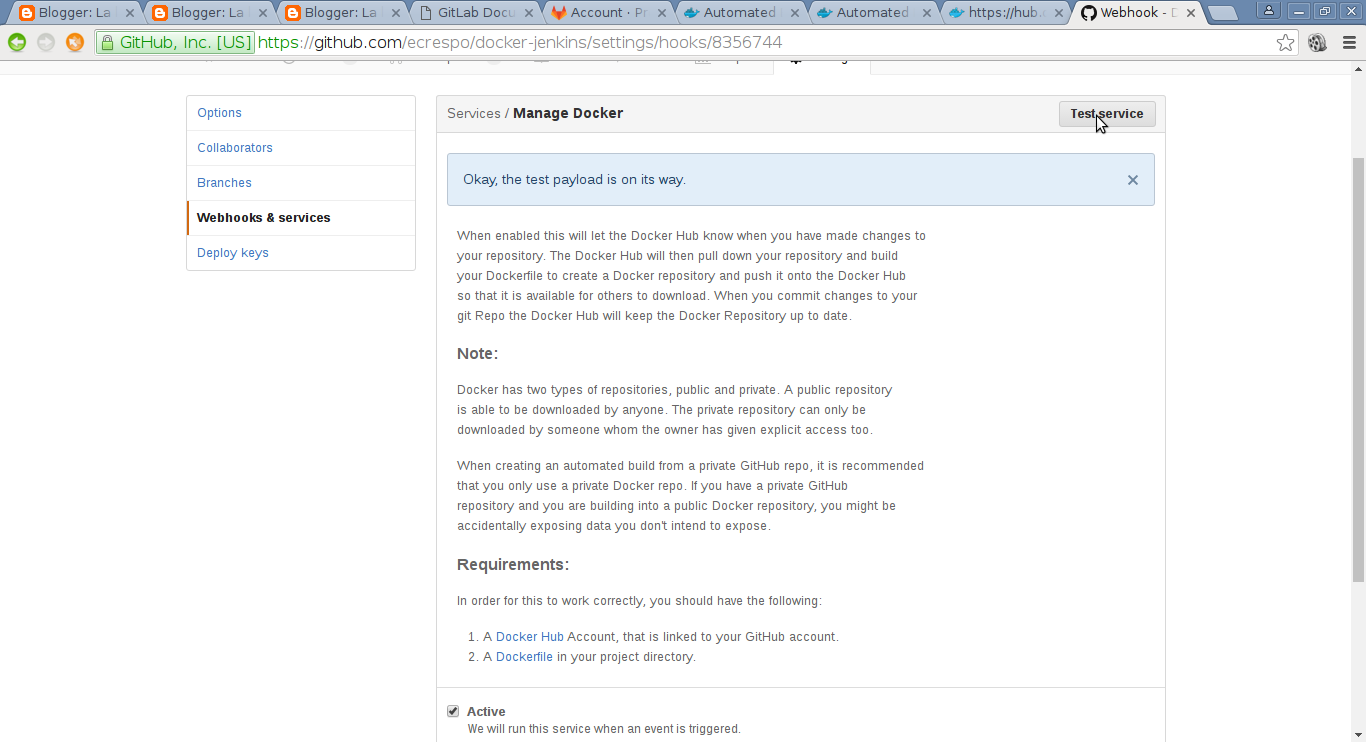 En esté artículo se explica como construir una imagen Docker automáticamente usando github con el hub de docker.