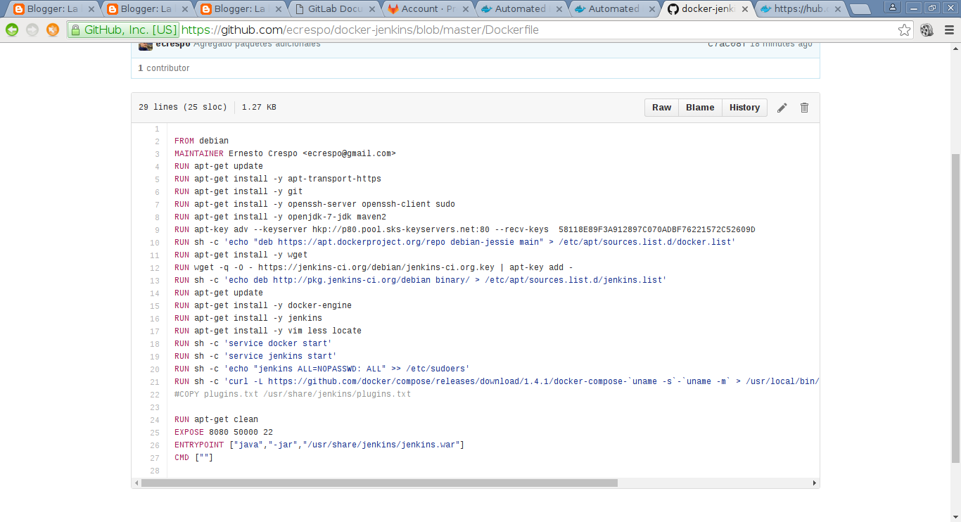 Para terminar se muestra el contenido del archivo Dockerfile de jenkins y el contenido del repositorio de github actualizado: