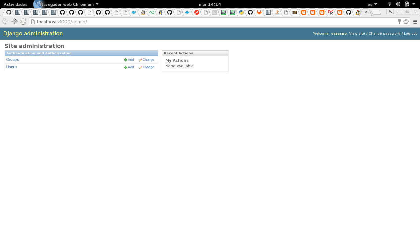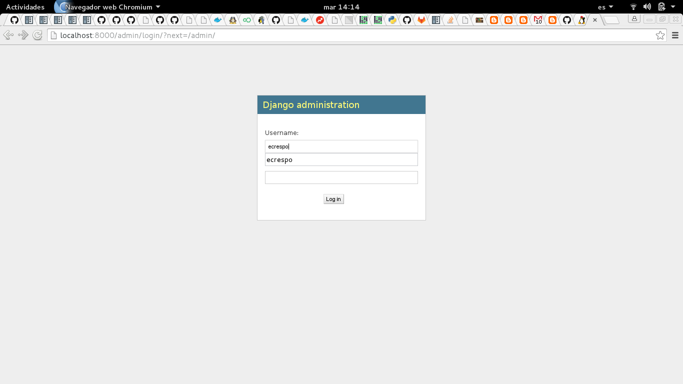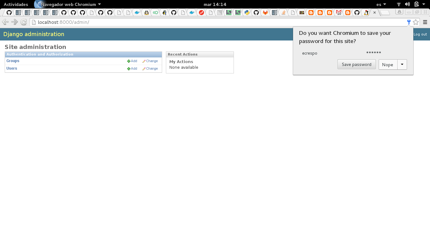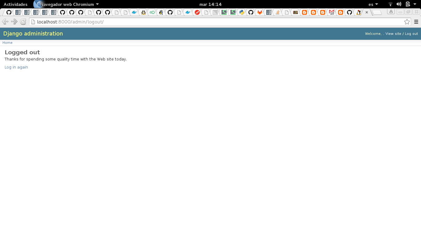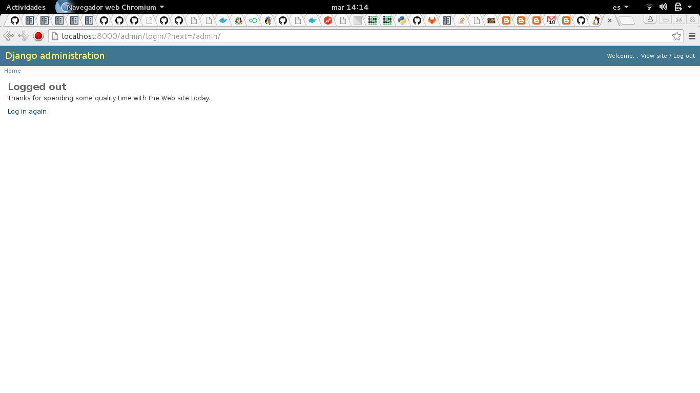 Este artículo realiza un inicio de sesión en el Admin de Django, coloca el usuario, la clave, le da click al botón aceptar, le dice al navegador que no quiere guardar la clave, cierra la sesión y por último vuelve a la página de inicio del admin de Django.