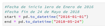 - Se definen las fechas de inicio y fin del analísis
