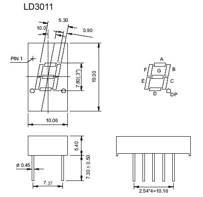 En la siguiente figura se muestra la identificación de los LEDs del display 7 segmentos: