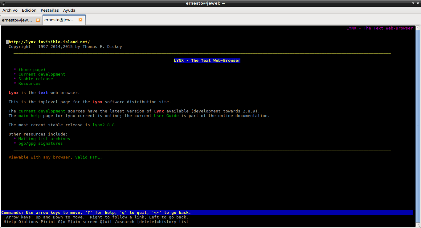 Lynx: Es un navegador para la cónsola, muy usado hace mucho. Para ejecutarlo con Docker se tiene el siguiente comando: