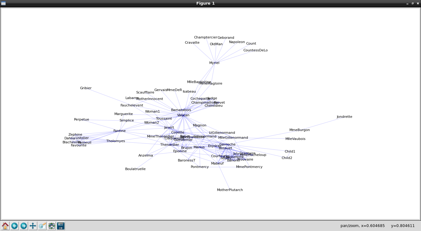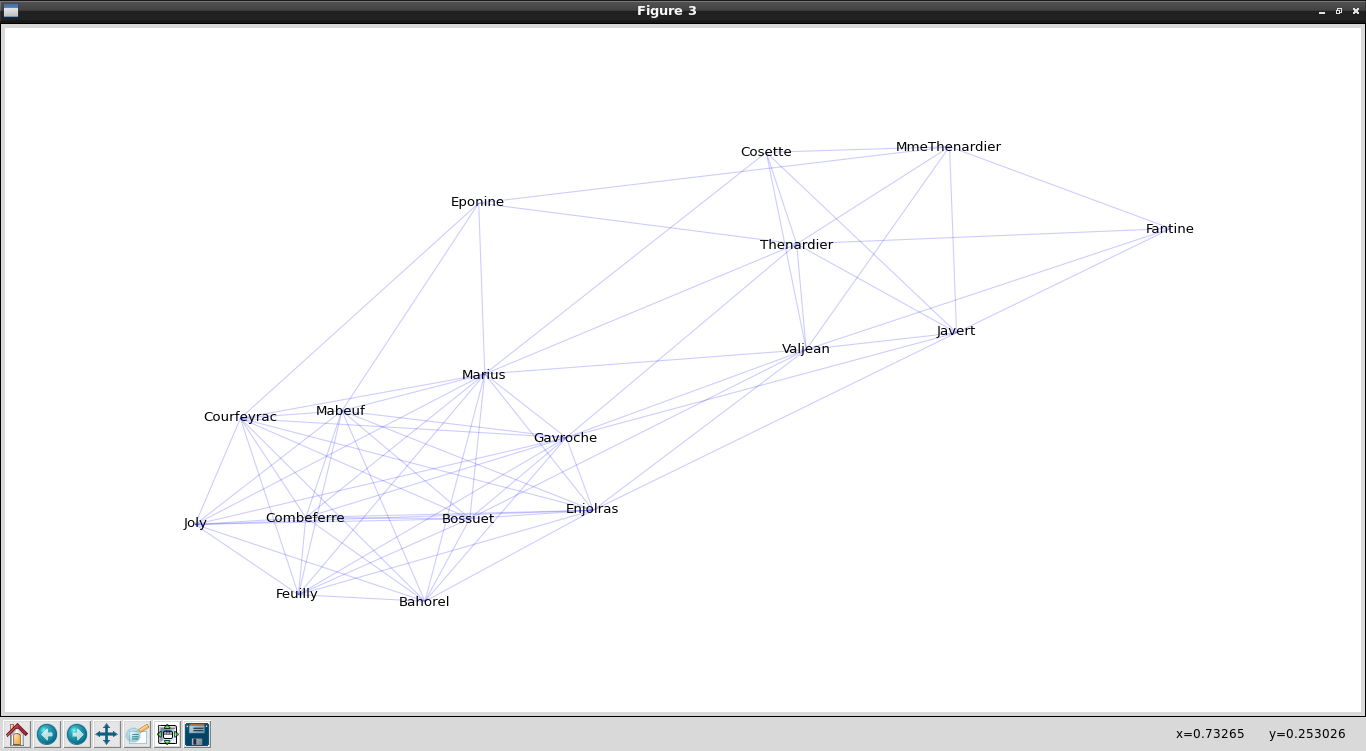 A continuación se muestra el grafo con los personajes más relevantes de la novela Los Miserables: