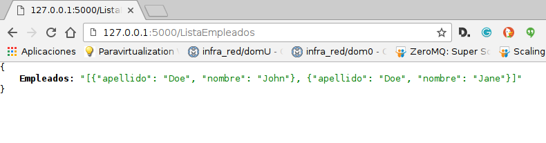 La idea es crear datos JSON a partir de un diccionario que maneja una lista de empleados, y se publica vía web por medio de flask.