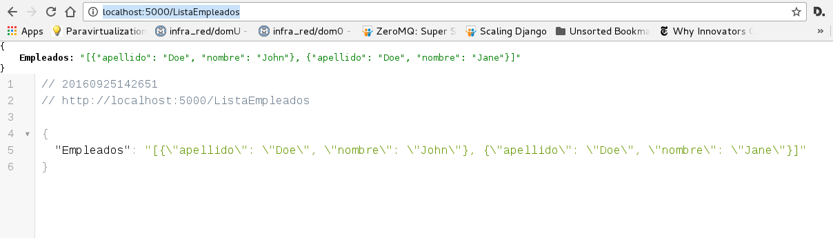 Al abri el navegador en la dirección http://localhost:5000/ListaEmpleados se tiene la imagen a continuación: