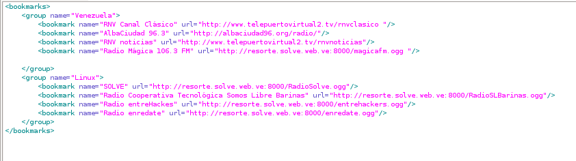 Archivo bookmarks.xml. El contenido de este archivo se muestra en la siguiente figura: