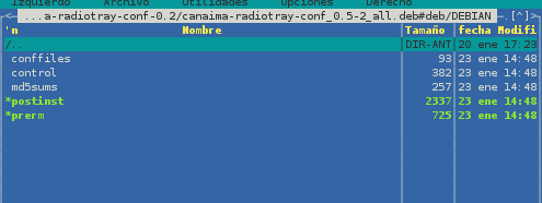 Equivs toma la definición de archivos (File) y crea los archivos para el proceso de instalación. En la siguiente figura se muestra la estructura de archivos del directorio DEBIAN dentro del paquete deb: