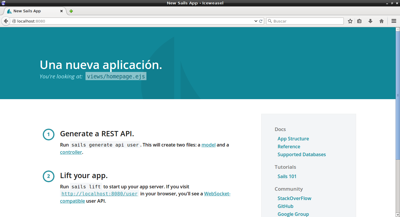 En este artículo se usa el framework sails.js, pero no en profundidad, simplemente crear el proyecto y ejecutarlo. Para más información pueden revisar el siguiente tutorial.