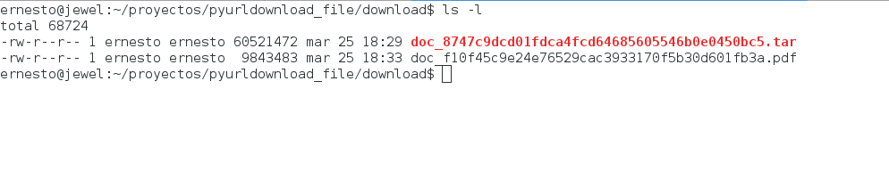 En la siguiente figura se muestra el directorio download con los primeros archivos descargados: