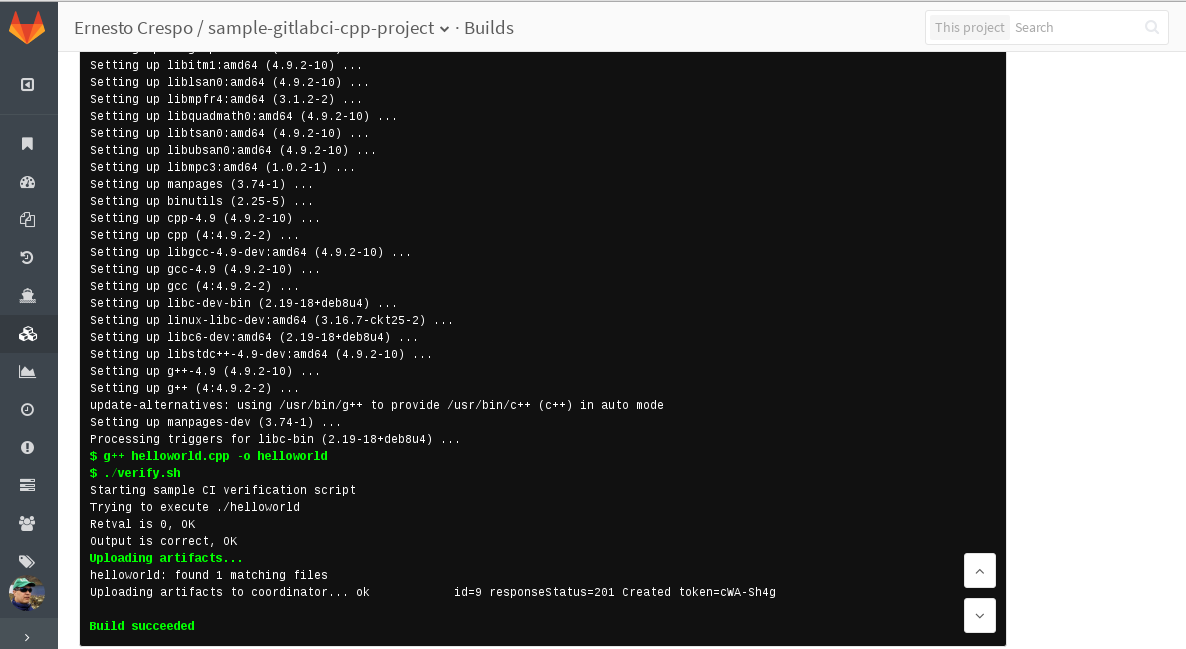 En el artículo del runner se tiene registrado un proyecto llamado sample-gitlabci-cpp-project tomado de github.