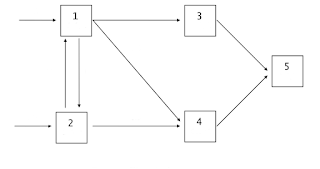De ejemplo de grafo se usará un modelo de procesos de colas, a continuación la imagen: