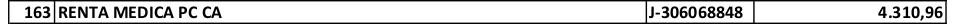 Tomemos la empresa con el número 163. Es la empresa: Renta Médica PC, C.A., RIF: J-306068848 y le asignaron 4.310,96 (como lo muestra los campos del resultado subrayados y en italica y la figura a continuación).