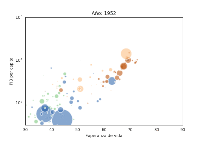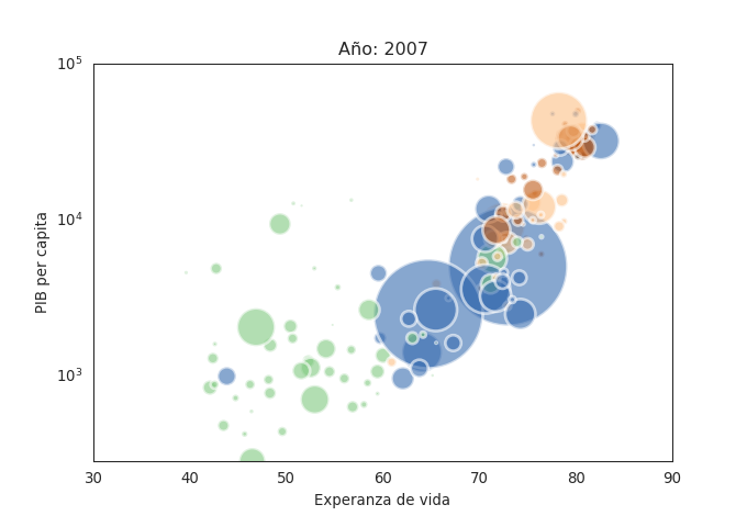 En febrero de 2013 creé un artículo sobre Cómo hacer gráficos de burbujas con matplotlib, la idea era ver como se generaba una gráfica al estilo de la presentación de Hans Rosling (por cierto, murió en Febrero de 2017).