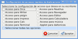 La interfaz gráfica fue creada con glade usando gtkbuilder en vez de libglade, esa es una de las diferencias principales con otros desarrollos gráficos mostrados en este blog. La interfaz tiene varios botones de verificación para seleccionar cuales opciones de teclas rápidas se quieren configurar.