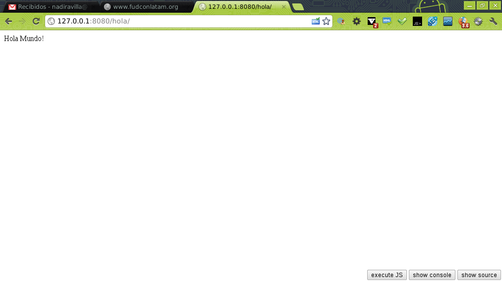 La figura muestra el resultado de abrir el url http://127.0.0.1:8080/hola/