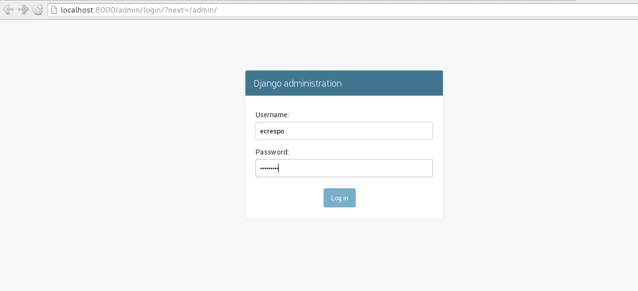 En la siguiente figura se tiene el inicio de sesión del admin de Django: