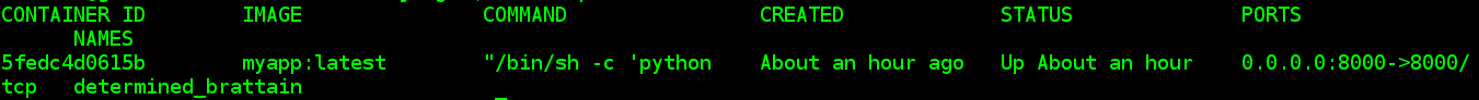 Se asocia el puerto 8000 del equipo al puerto 8000 del docker myapp.