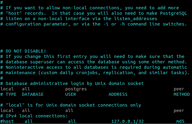 sudo vim /etc/postgresql/12/main/pg_hba.conf