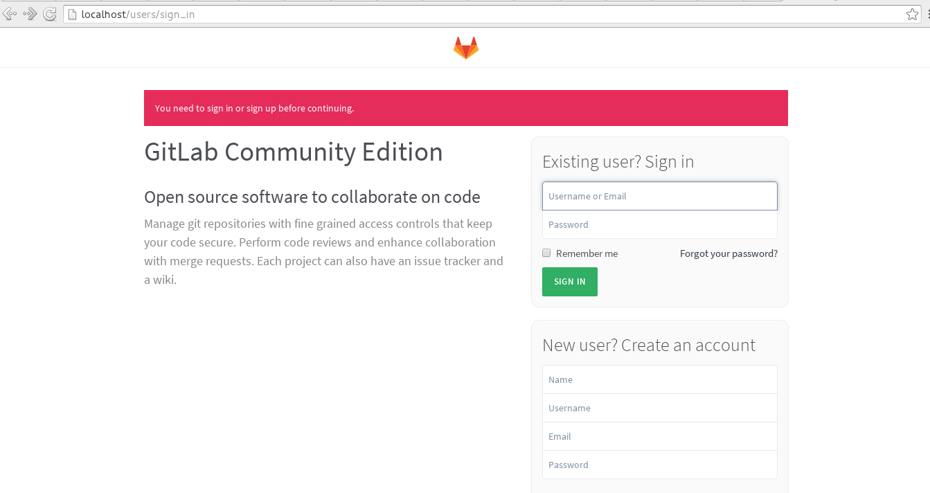 A continuación se muestra una captura de pantalla del gitlab en funcionamiento desde Docker: