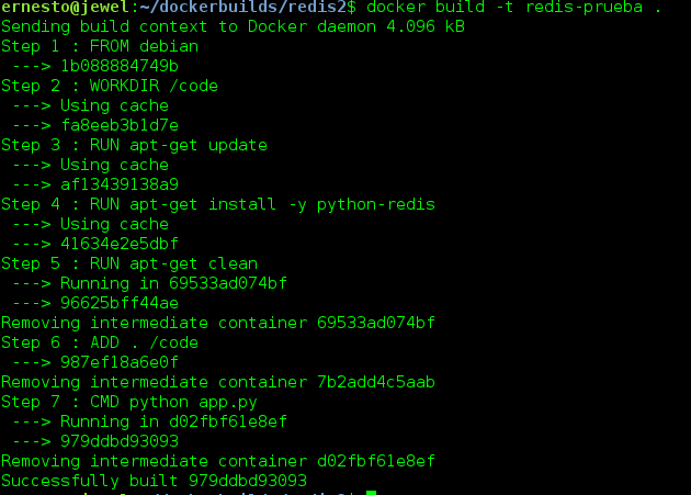 #Imagen base de debian FROM debian #Directorio de trabajo /code WORKDIR /code #Actualización de la lista de paquetes RUN apt-get update #Se instala el módulo redis para python RUN apt-get install -y python-redis #Se limpia la cache de paquetes deb RUN apt-get clean #Se agrega el código en el directorio de trabajo ADD . /code #Se ejecuta el script CMD python app.py