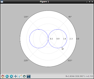 #!/usr/bin/env python #Importar pyplot import matplotlib.pyplot as plt #Importar numpy import numpy as np #Se crea el rango de valores angulares theta = np.arange(0., 2., 0.005)*np.pi #Se calcula el coseno del rango de valores angulares r = 2*np.abs(np.cos(theta)) #Se crea la grafica en coordenadas polares pasando #el angulo theta y los valores de r plt.polar(theta, r) #Se crea una grilla de los angulos 45,90 y 369 plt.thetagrids(range(45, 360, 90)) plt.rgrids(np.arange(0.2, 3.1, .7), angle=0); #Se genera la grafica plt.show()