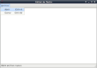 Se tendrá una barra de menú con la opción Archivo, dentro de ella se despliega la opción abrir y cerrar aplicación; al abrir la aplicación en la ventana del editor aparecerá el nombre del archivo.