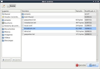 La siguiente figura muestra la ventana de dialogo de abrir archivo: