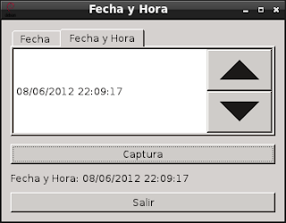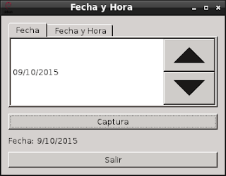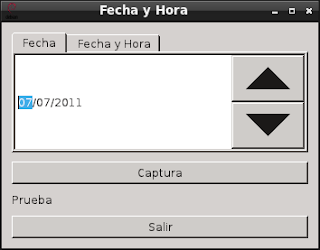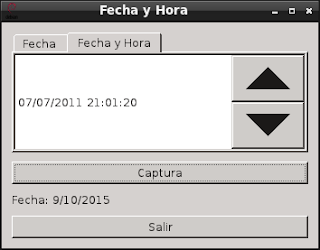 En este artículo se creará una ventana con 2 pestañas, 2 botones, y una etiqueta; el primer botón capturará le fecha o fecha y hora según la pestaña seleccionada y lo presentará en la etiqueta, el otro botón es para salir de la aplicación; en la primera pestaña se muestra el widget de fecha y en la segunda se muestra el widget de fecha y hora.