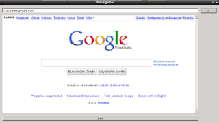 La idea es tener una ventana de entrada de datos donde se escribe el url a navegar, a su lado se tiene un botón que ejecuta la navegación al url dado, luego abajo se tiene el widget de navegación y por último abajo se tiene un botón de salir. Se puede navegar también dando enter en el campo del url.