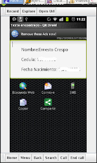 Por último se muestra la imagen de un celular con Android donde se proceso el código QR y muestra la información del mismo: