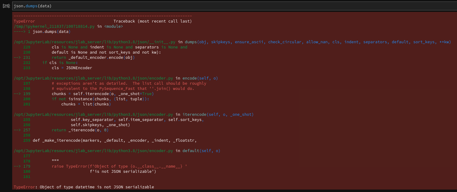 Al intentar convertir a json el diccionario data. Este devolverá error.
