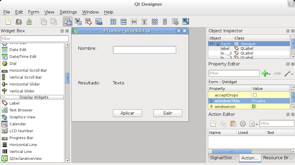 En este caso en vez de escribir todo el código de la intefaz gráfica se usará la herramienta QtDesigner.