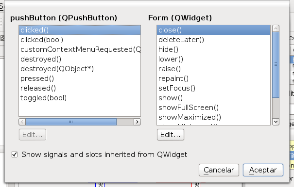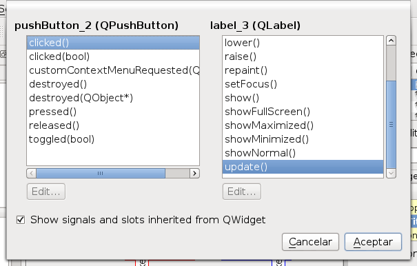 La siguiente figura muestra la relación entre los botones y señales: