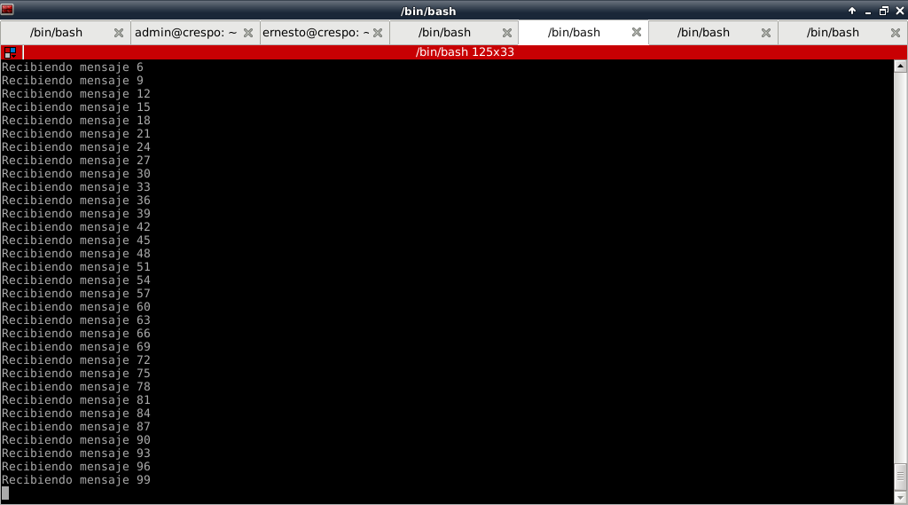 Al ver las 3 figuras de los servidores se nota como se distribuye de forma equitativa la recepción de los mensajes.