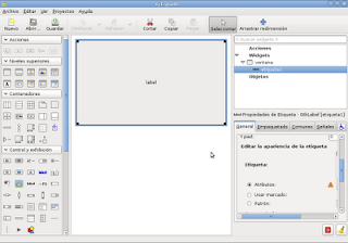 En la figura se muestra la ventana creada y el widget etiqueta con el mensaje. La interfaz se guarda con extensión .glade el cual contiene un archivo XML.