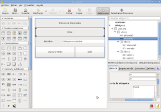 En el siguiente ejemplo de desarrollo de aplicaciones gráficas con glade se muestra como capturar texto en una entrada de texto, como modificar la información en una etiqueta usando botones.