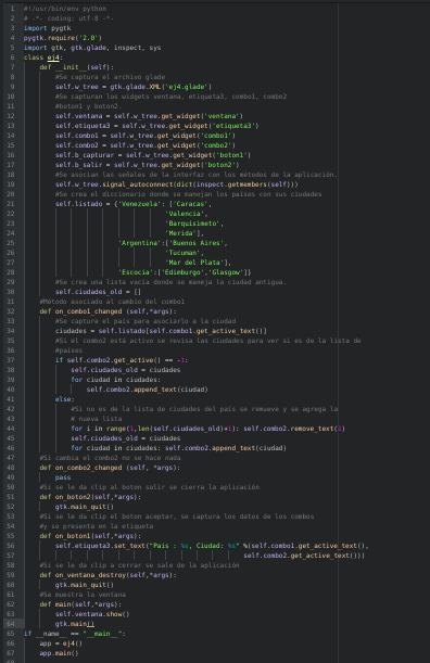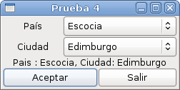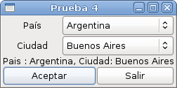 Ahora se mostrará como usar el widget combobox. La idea es mostrar una lista de países en el primer combo y cuando este cambie, se cambie la lista de ciudades con respecto a los países.