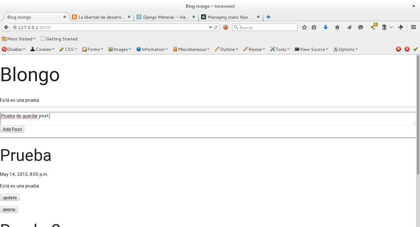 En este caso se tocará el tema de crear un blog con Django usando mongodb, este artículo se basa en un artículo en Inglés del sitio Developers Work de IBM .