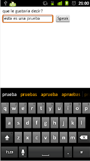 Y la figura donde se muestra que se escribió un texto en el formulario, al darle clip al botón el celular reproduce el texto que se le paso al formulario.