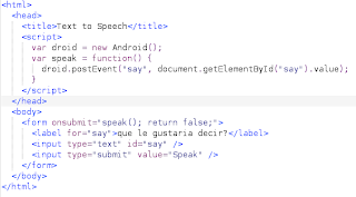 Se tiene un archivo html llamado text_to_speech.html con código javascript, es un formulario html donde se le pasa un texto a reproducir.