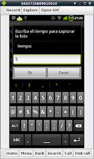 La siguiente figura muestra que se le pide al usuario el tiempo que quiere esperar hasta que tome la foto: