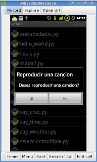 Pensaba escribir primero como crear opciones a un menú pero recordé que existe la posibilidad de reproducir una canción mp3 desde python con el API de SL4A.
